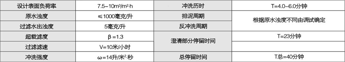 本設備采用大阻力配水系統,反應區采用新技術,以加強吸附凝聚反應。沉淀區采用斜板管雙層組合,提高其沉淀效率。過濾部分采用多層濾料過濾(濾料為使用壽命長的白煤和石英砂)。
